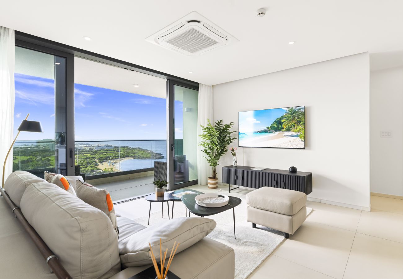Nestled in the sought-after Cupecoy neighborhood, this beautifully appointed 2-bedroom apartment combines modern comfort with effortless island living. The open-plan kitchen is fully equipped for those who love to cook, featuring induction cooking, refrigerator, microwave, oven, freezer, and dishwasher — everything you need to feel right at home.