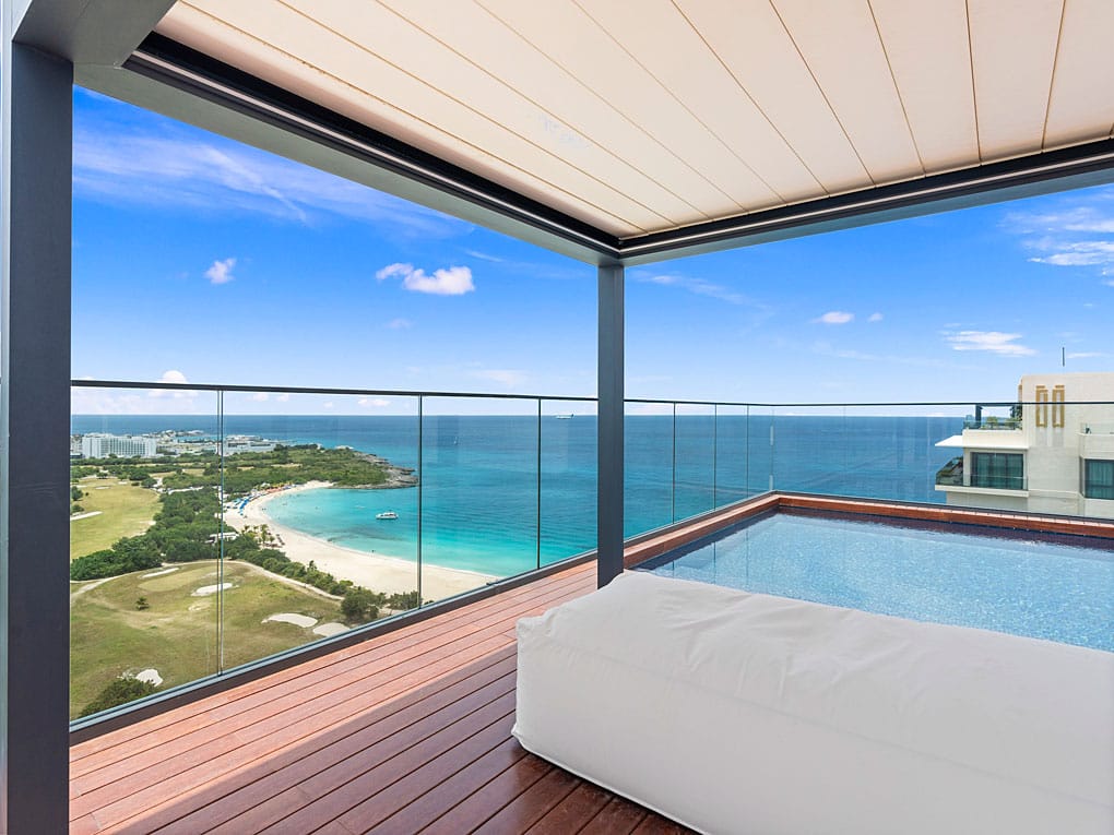 Step out of your private elevator and into a world of floor-to-ceiling glass and 360-degree panoramic views that will quite literally take your breath away. From the turquoise shimmer of Mullet Bay Beach to the rolling greens of the world-class golf course and the sparkling lights of the Simpson Bay Lagoon—every inch of St. Maarten is at your feet.