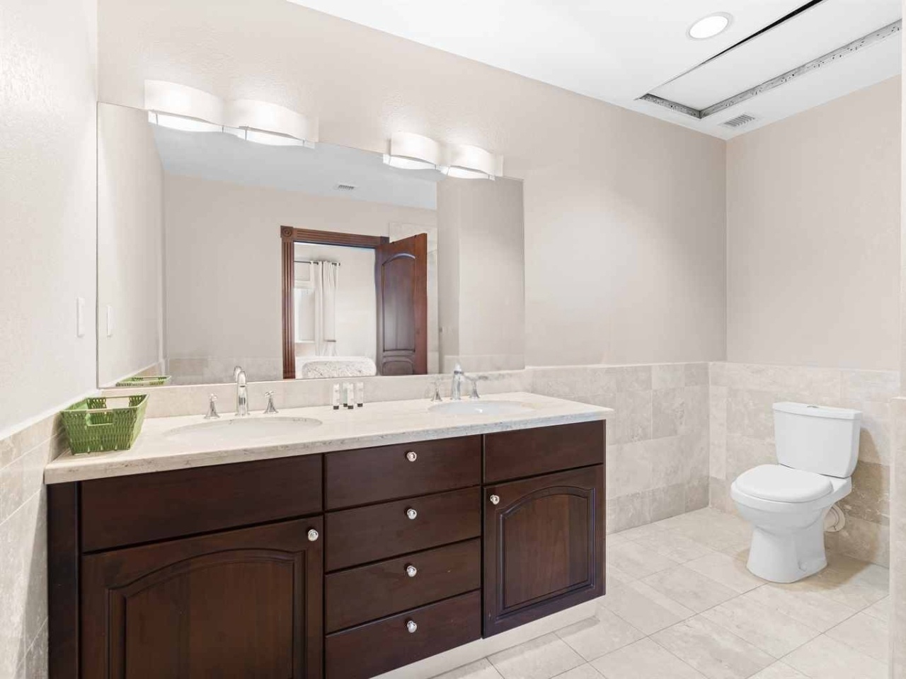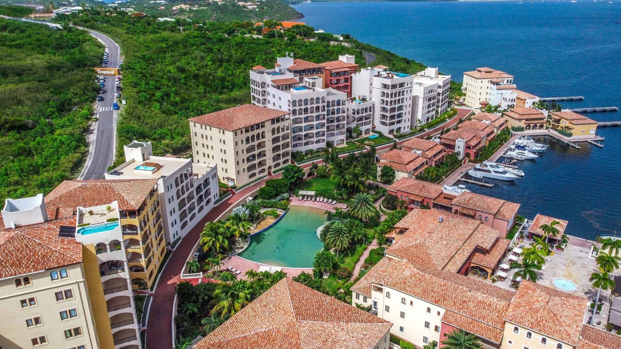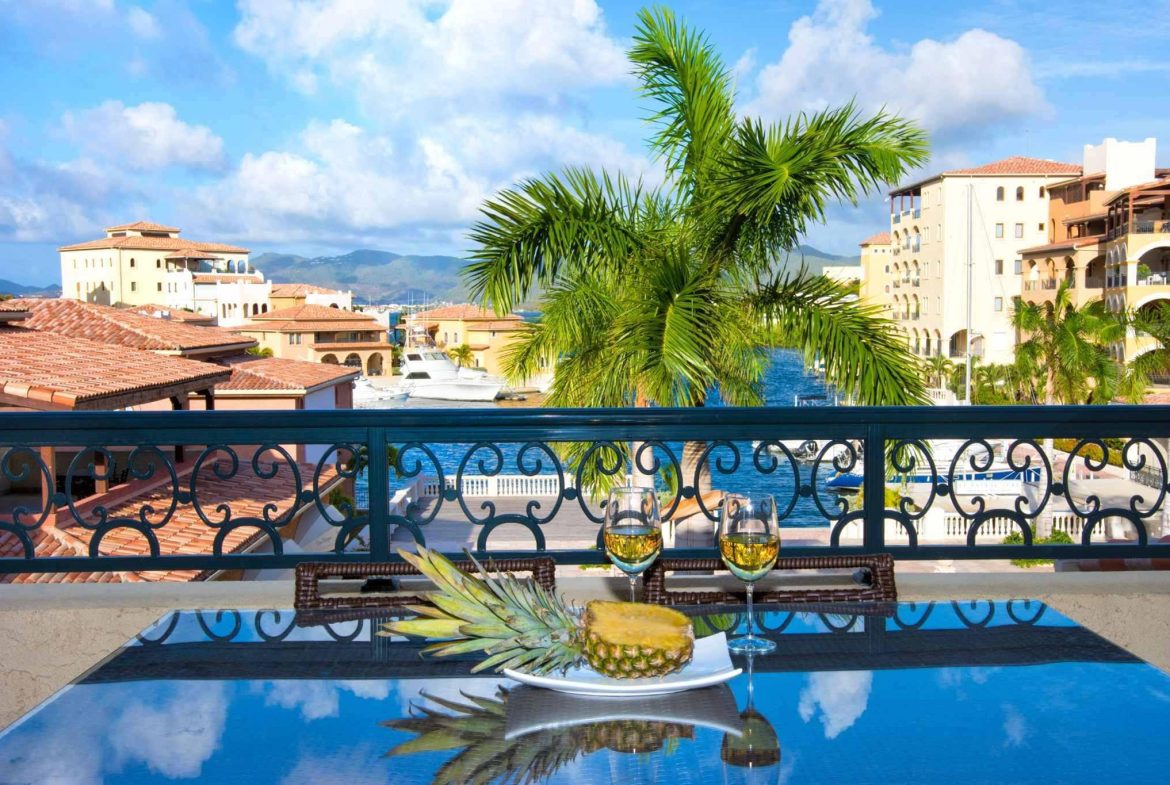 - Two additional guest bedrooms, each with private balconies, ample closet space, and en-suite marble bathrooms with mahogany vanities